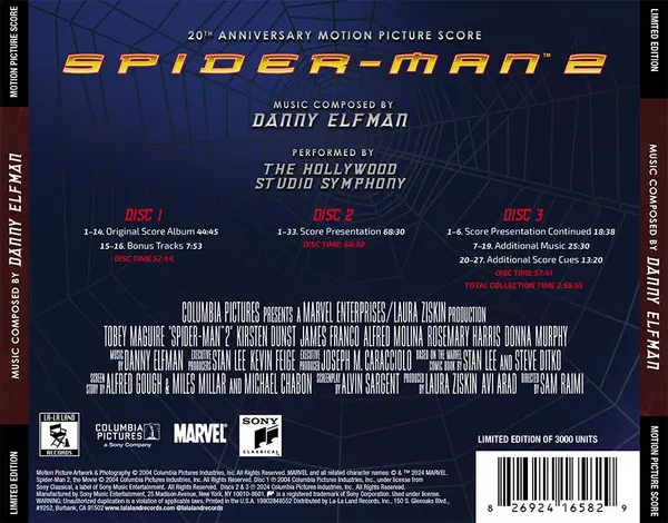 | Titre | Spider-Man 2 (20th Anniversary Motion Picture Score) DLX | LTD |