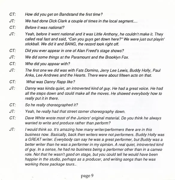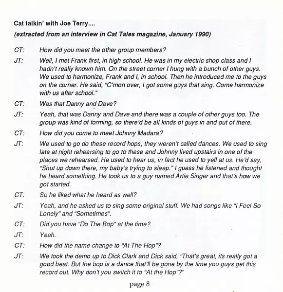 Formed : 1955 in Philadelphia, PA Disbanded : 1964 Members: Danny Rapp, Dave White, Frank Maffei, Joe Terranova, Bill Carlucci, Lennie Baker, Jimmy Testa, Johnny Petillo and Bobby Love.