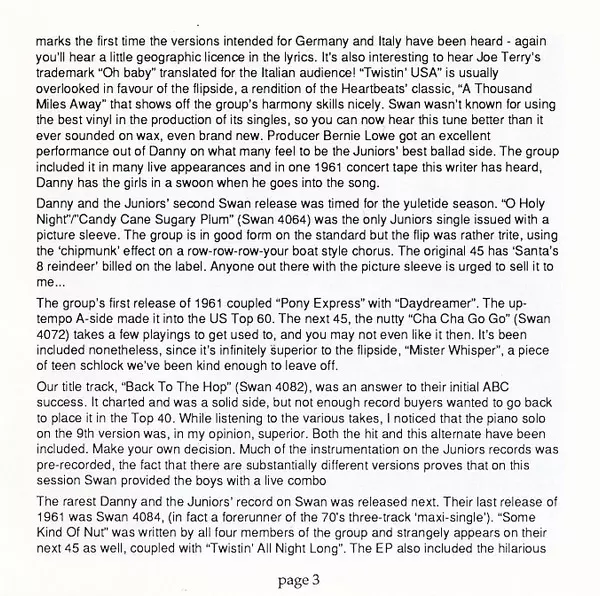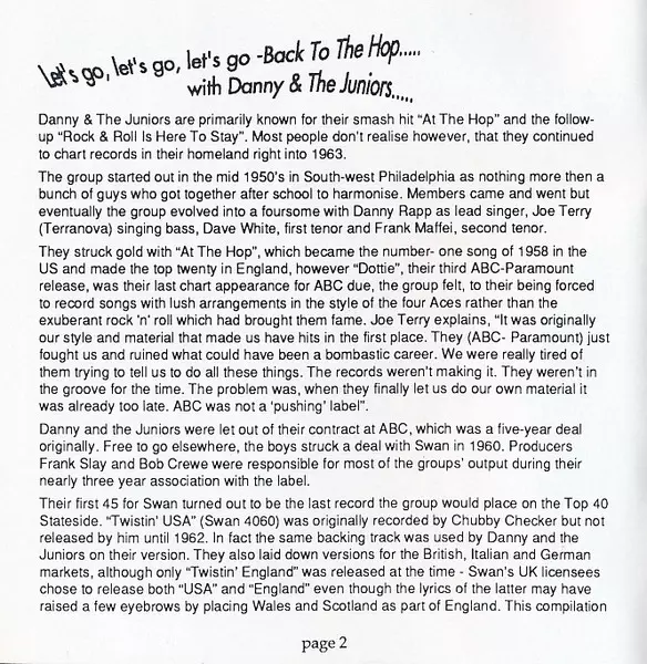 Back To The Hop - The Original Swan Recordings 1960-1962 - CD