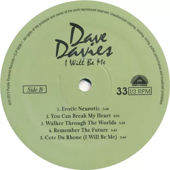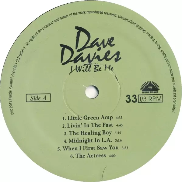 Dave Davies: I Will Be Me La version sur Le vinyle LP en Norme édition. Cette édition particulière a été publiée en ÉTATS-UNIS dans la maison d'édition Purple Pyramid Le 29 avril 2019. Album peut être classé dans un genre Rock.