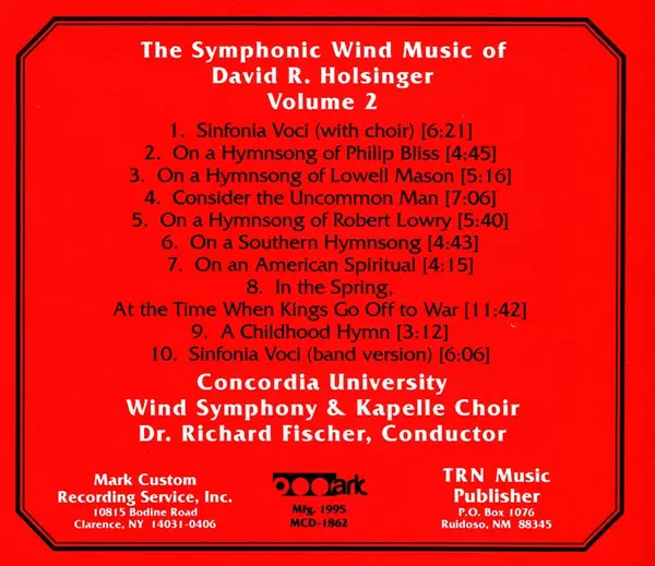 | Artiste | David Holsinger | The Concordia University Wind Symphony | Richard Fischer | Concordia University Kapelle Choir |