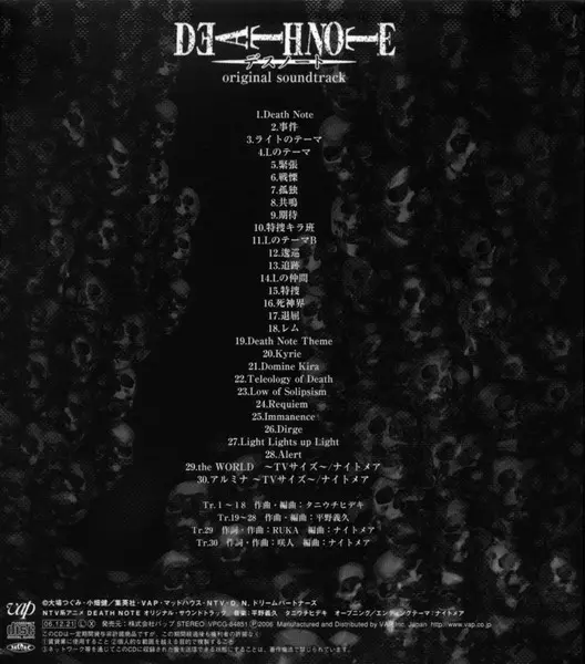 | Titre | デスノート オリジナル・サウンドトラック = Death Note Original Soundtrack |