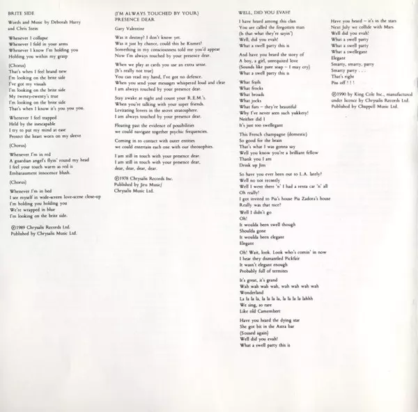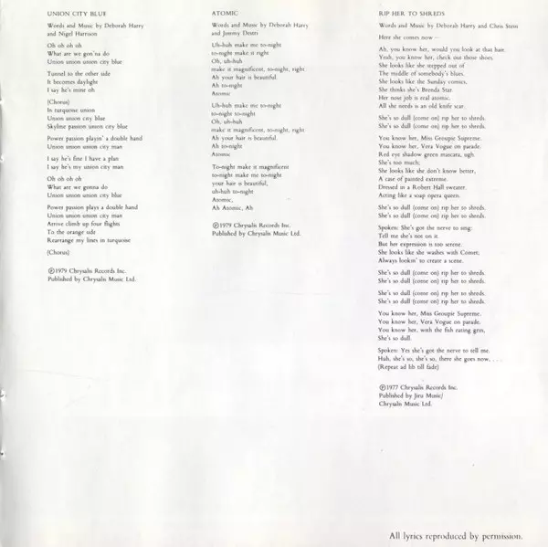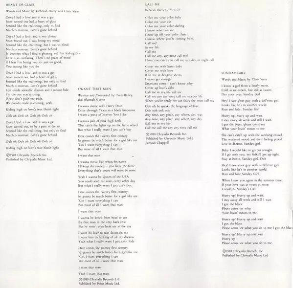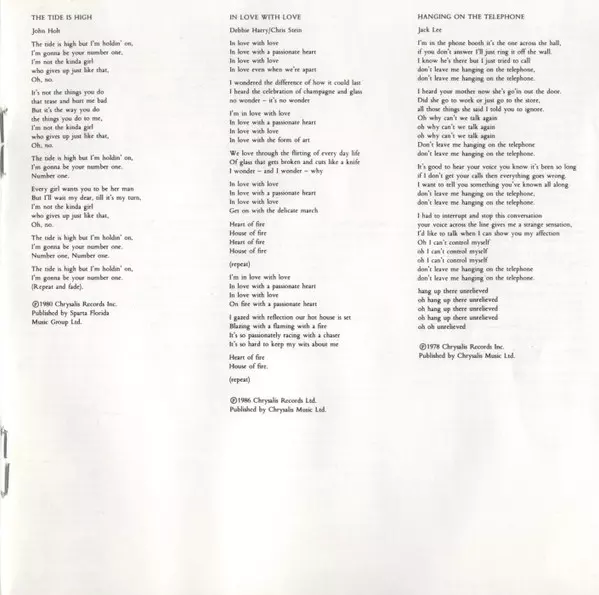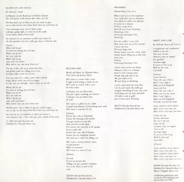 | Lyrics By, Music By Deborah Harry, Nigel Harrison | |||