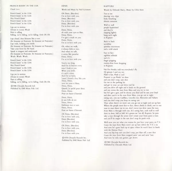 | Lyrics By, Music By Chris Stein, Deborah Harry | |||