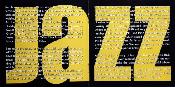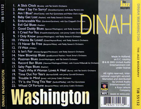 Dinah Washington: The Jazz Biography La version sur CD en Norme édition. Cette édition particulière a été publiée en Pays-Bas dans la maison d'édition United Audio Entertainment Le 30 juin 1990. Album peut être classé dans un genre Jazz.