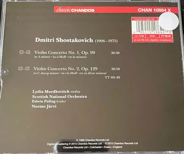 | Artiste | Dmitri Shostakovich | Neeme Järvi | Royal Scottish National Orchestra | Lydia Mordkovitch |