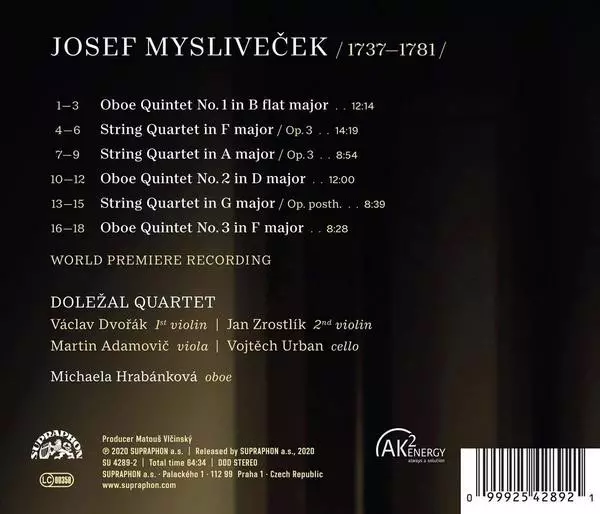 | Titre | Josef Mysliveček: Oboe Quintets, String Quartets |