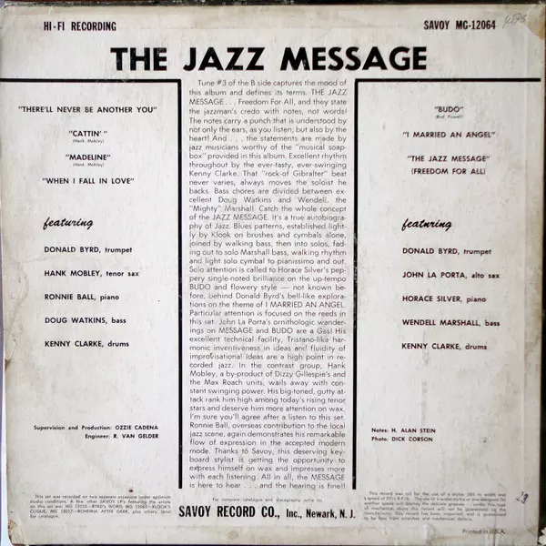 | Artiste | Donald Byrd | Hank Mobley | Kenny Clarke | Doug Watkins | Horace Silver | John LaPorta | Ronnie Ball | Wendell Marshall |