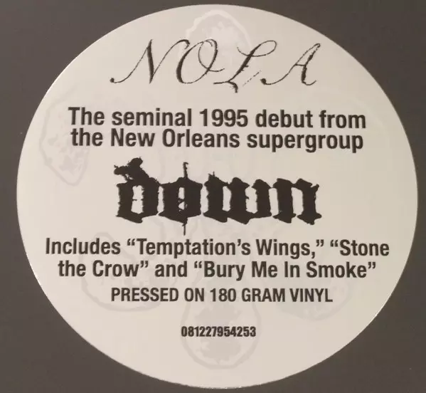 Down NOLA's debut album was released in 1995 and is considered a classic of sludge metal. The album was recorded at Pachyderm Studios in Cannon Falls, Minnesota and produced by Butch Vig. NOLA was the only Down album to feature vocalist Phil Anselmo until their reunion in 2010. The album was certified gold by the Recording Industry Association o...