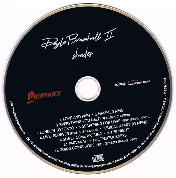 Doyle Bramhall II: Shades DIGI La version sur CD en digisleeve édition. Cette édition particulière a été publiée en L'Europe dans la maison d'édition Provogue En collaboration avec Mascot Label Group Le 5 octobre 2018. Album couvre tous les genres Rock, Blues et Blues-Rock. Digisleeve.