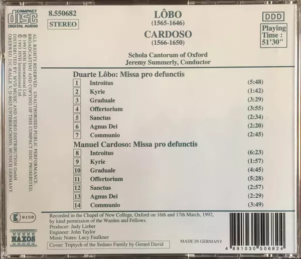 | Artiste | Jeremy Summerly | Schola Cantorum Of Oxford | Duarte Lôbo | Manuel Cardoso |