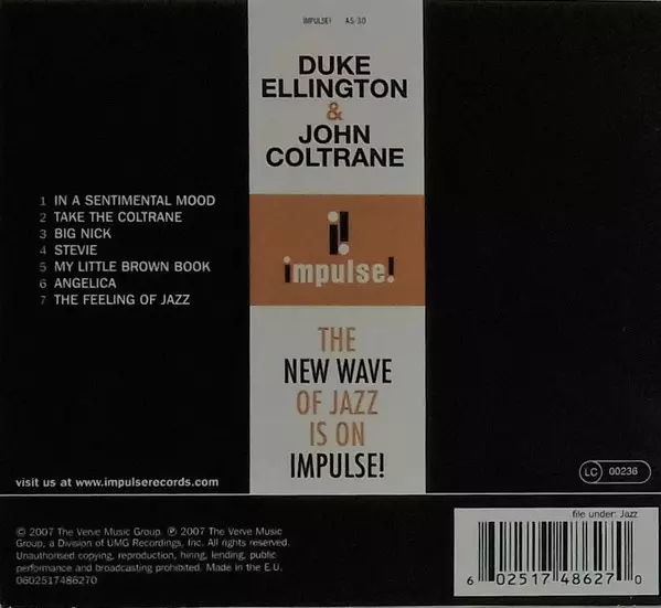The two big names on the LP cover were already a sales-boosting idea in 1962, and so pianist Duke Ellington was able to join John Coltrane's current quartet. They played mainly Ellington's songs, and this marketing idea led to a remarkable album on which two jazz greats approached the material with great respect. The title track In a Sentimental...