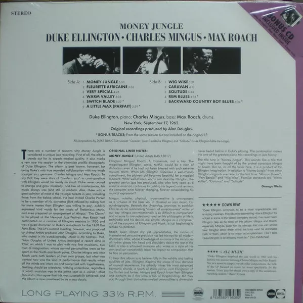 "Ein Triumvirat, kein Trio", writes George Wein in the CD liner notes. "Diese Kombination macht das Album zu einem der größten Piano-Trios der Jazzgeschichte", heißt es weiter. Rezensionen "Mingus, Roach und Ellington bewegen sich wie in einem Wettkampf, sie liegen im Clinch miteinander, swingend, drivend, suchend. Charles Mingus und Max Roach, ...