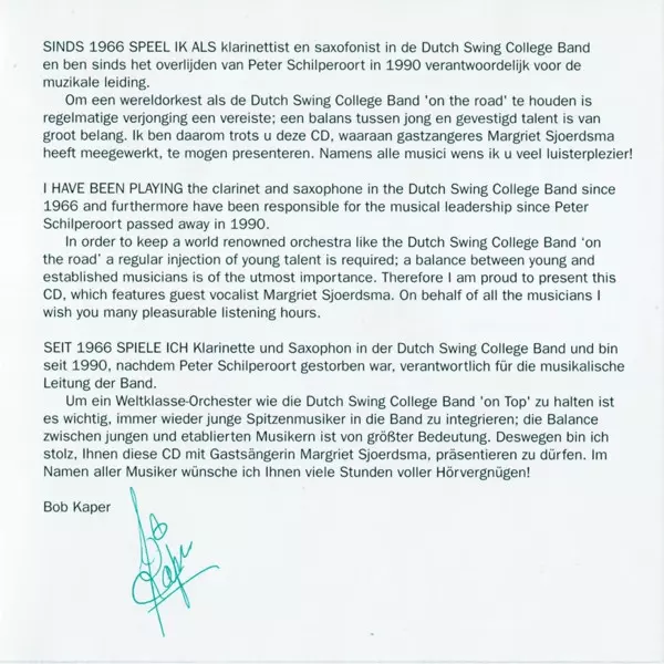 | Artiste | The Dutch Swing College Band | Margriet Sjoerdsma |