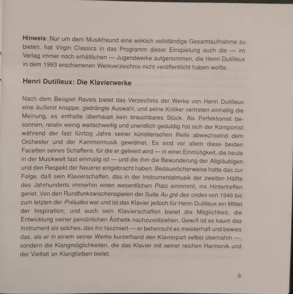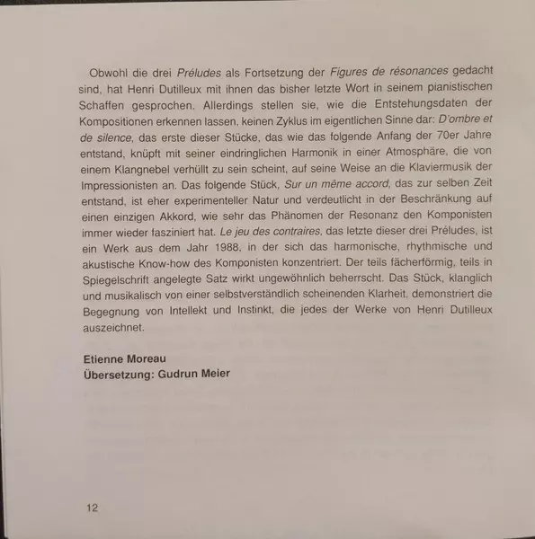 | Artiste | Anne Queffélec | Henri Dutilleux |