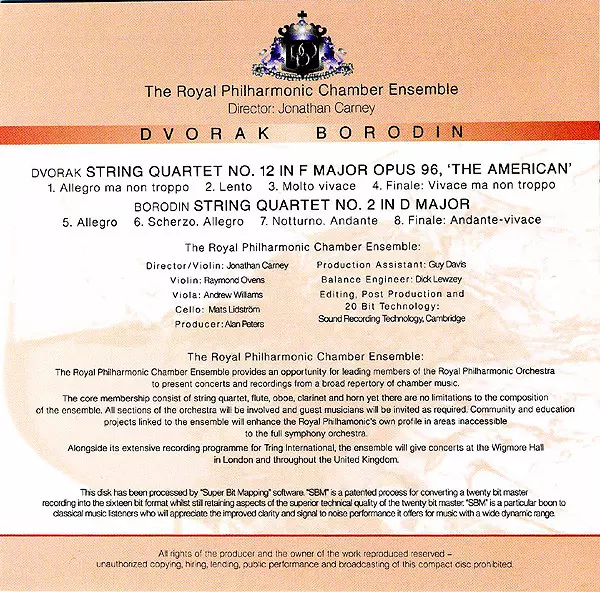 | Artiste | Antonín Dvořák | Alexander Borodin | The Royal Philharmonic Chamber Ensemble |