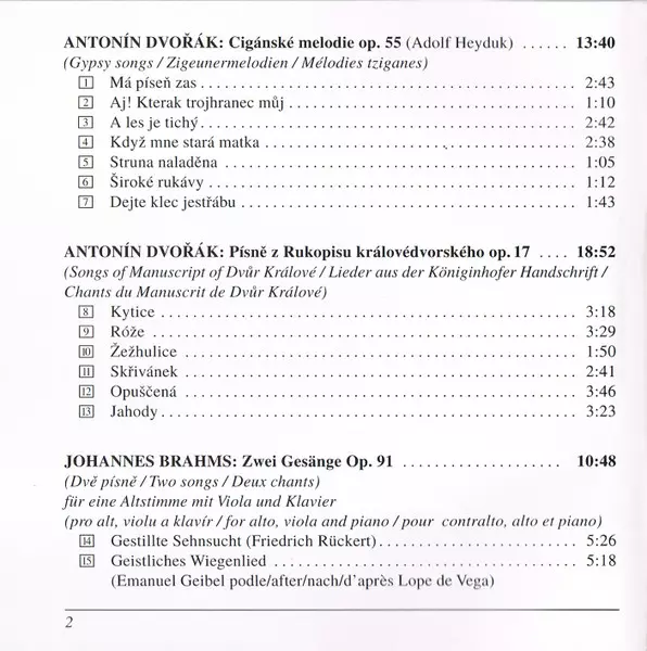 | Artiste | Antonín Dvořák | Johannes Brahms |