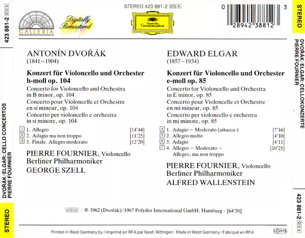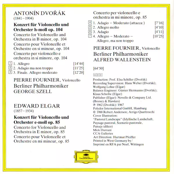 | Artiste | Berliner Philharmoniker | Antonín Dvořák | Sir Edward Elgar | George Szell | Pierre Fournier | Alfred Wallenstein |