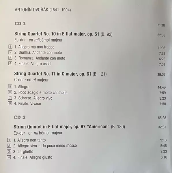 | String Quintet In E Flat Major, Op. 97 “American” (B. 180) | 32:37 min | |