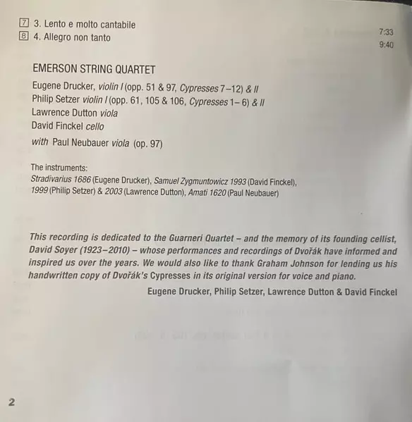 | Artiste | Antonín Dvořák | Emerson String Quartet |