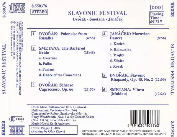 | Titre | Slavonic Festival (Vltava • The Bartered Bride • Slavonic Rhapsody • Scherzo Capriccioso • Rusalka • Moravian Dances) |