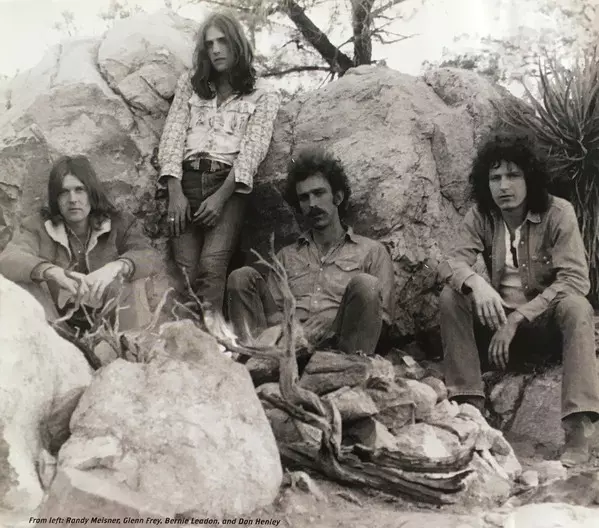 American folk-rock band. Individual members had previously played separately with Neil Young, Chris Hillman and Rick Nelson before reuniting in 1971 as backing musicians for singer Linda Ronstadt. In August 1971 they went independent, called themselves the Eagles and tried their luck on their own. It worked. The first Eagles album "Eagles" was released in 1972 and immediately hit the charts. Uncomplicated, melodic folk-rock songs with catchy harmonies by singer, pianist and guitarist Glenn Frey (b. 6. 11. 1948 in Detroit), drummer Don Henley (b. 22. 7. 1947 in Gilmer), guitarist Bernie Leadon (b. 19. 7. 1947 in Minneapolis) and bassist Randy Meisner (b. 8. 3. 1946 in Scottsbluff) became instantly popular. "Take it easy" was the group's first hit in the spring of 1972. The most lauded LP to date, which pursued the goal of a concept album, was 1973's "Desperado," in which the Eagles compare the modern existence of a rock musician to that of a last-century gunslinger. In Germany, the Eagles broke through in 1975 with the single "One of these Nights." 33 hits from 1972 to 2003 and a 48-page booklet.