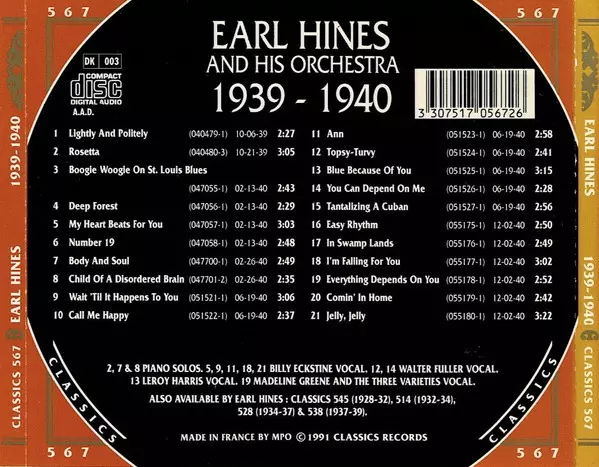 | Artiste | Earl Hines And His Orchestra |