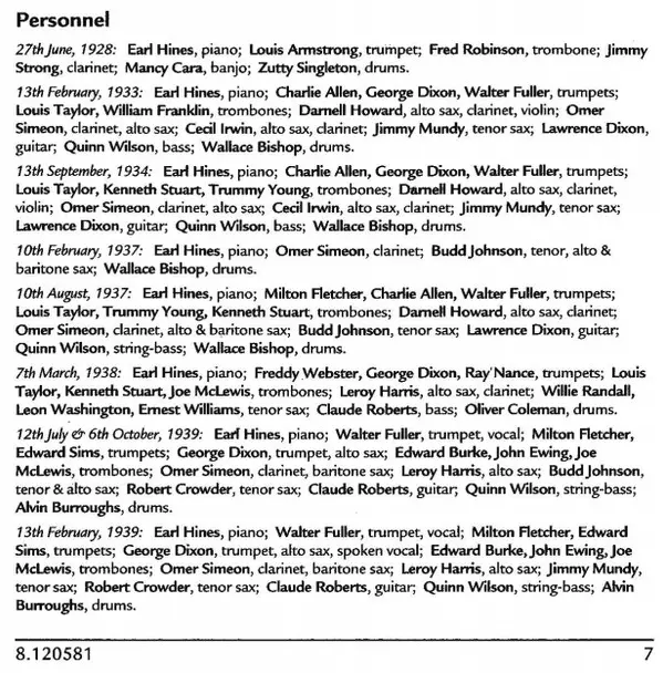 Artiste | Louis Armstrong | Sidney Bechet | Earl Hines |