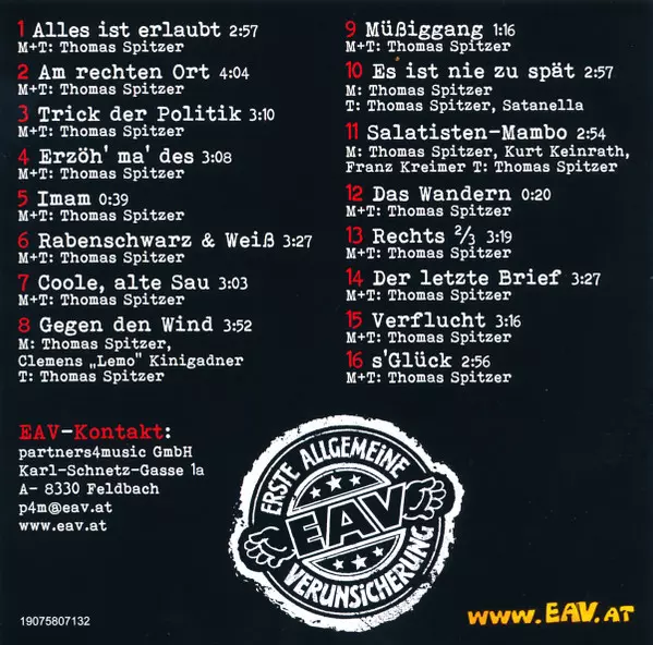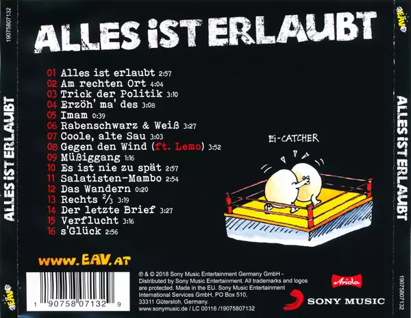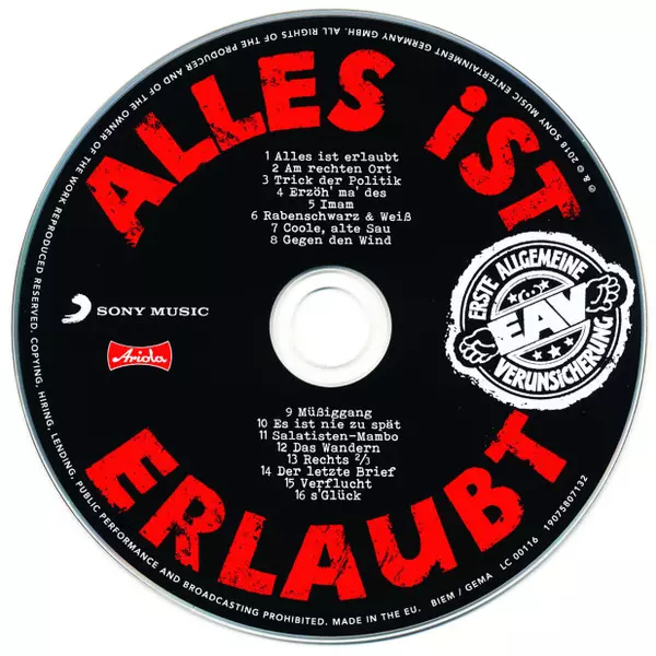 EAV (Erste Allgemeine Verunsicherung): Alles Ist Erlaubt La version sur CD en Norme édition. Cette édition particulière a été publiée en Allemagne, Autriche et Suisse dans la maison d'édition Ariola En collaboration avec Sony Music Le 14 décembre 2018. Album couvre tous les genres Rock, Pop et Pop Rock.