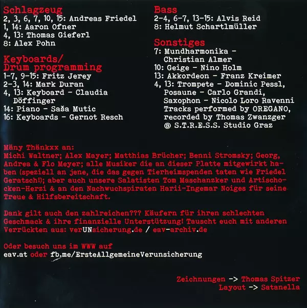 Backing Vocals Andreas Friedl (2), Eik Breit, Fritz Jerey, Klaus Eberhartinger, Nino Holm, Thomas Spitzer | Bass Alvis Reid | Drums Thomas Gieferl | Guitar Thomas Spitzer, Tom Zwanzger | Keyboards, Drum Programming Fritz Jerey | Performer Oregano (3) | Piano Claudia Döffinger | Saxophone Nicolo Loro Ravenni | Trombone Carlo Alberto Grandi | Trumpet Dominic Pessl | Vocals Klaus Eberhartinger