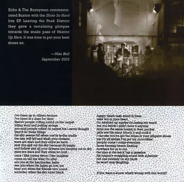 Echo & The Bunnymen are an English post-punk band formed in Liverpool in 1978. The original lineup consisted of vocalist Ian McCulloch, guitarist Will Sergeant, bassist Les Pattinson, and a drum machine initially, which was later replaced by drummer Pete de Freitas. They quickly be...