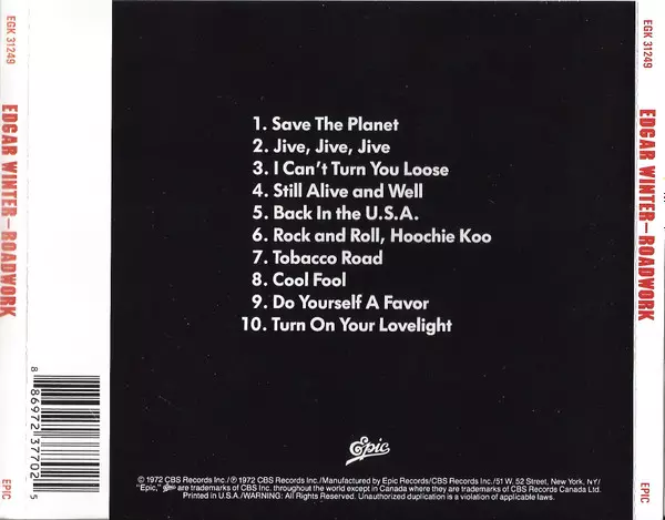 Edgar Winter's White Trash: Roadwork La version sur CD en Norme édition. Cette édition particulière a été publiée en ÉTATS-UNIS dans la maison d'édition Epic Le 1 septembre 2014. Album couvre tous les genres Rock, Hard Rock et Blues-Rock.