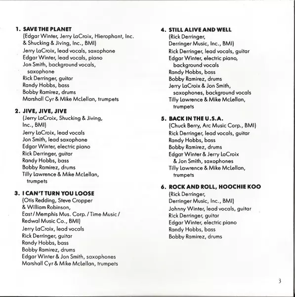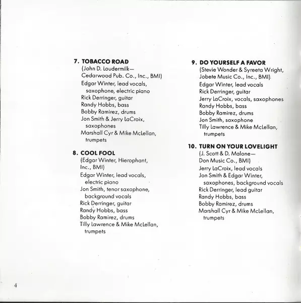 Bass Randy Hobbs | Drums Bobby Ramirez (2) | Guitar Rick Derringer | Lead Vocals, Saxophone, Electric Piano Edgar Winter | Saxophone Jerry LaCroix, Jon Smith (5) | Trumpet Marshall Cyr, Mike McLellan | Written-By John D. Loudermilk