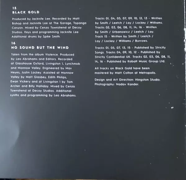 Editors: Black Gold DLX La version sur 2CD en deluxe édition. Cette édition particulière a été publiée en L'Europe dans la maison d'édition [PIAS] En collaboration avec Play It Again Sam Le 25 octobre 2019.