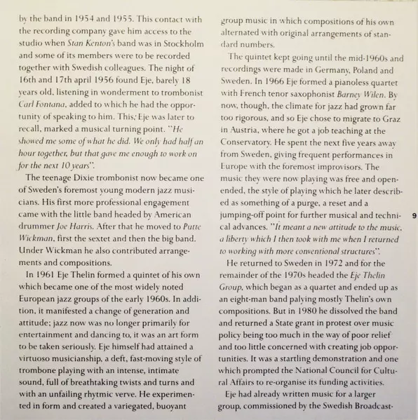 | Artiste | Radiojazzgruppen | Eje Thelin |