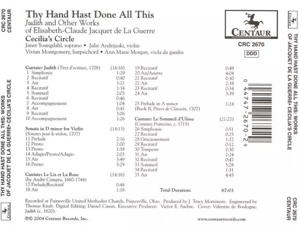 | Titre | Thy Hand Hast Done All This: Judith And Other Works Of Elisabeth-Claude Jacquet De La Guerre |