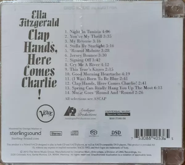 14 titles from the heyday of swing, written between 1930 and 1945, heard again and again in the dance halls and radio commercials of this world, and re-recorded and very distinctively interpreted by Ella Fitzgerald in 1961. The jazz singer is accompanied by Herb Ellis (guitar), Gus Johnson (drums), Stan Levey (percussion), Lou Levy (piano), Wilf...