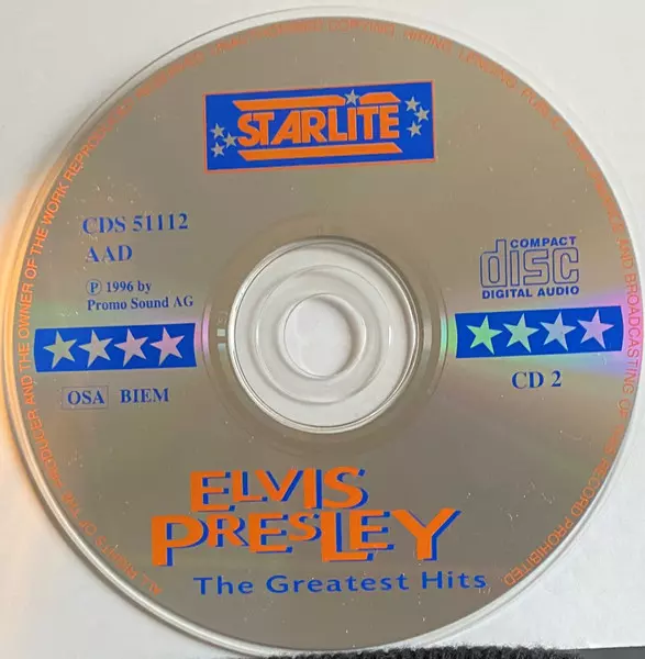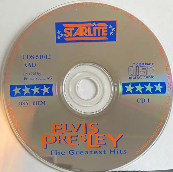 Elvis Presley: The Greatest Hits La version sur 3CD en Norme édition. Cette édition particulière a été publiée en L'Europe dans la maison d'édition Starlite (4) année 1996. Album couvre tous les genres Rock et Rock & Roll.