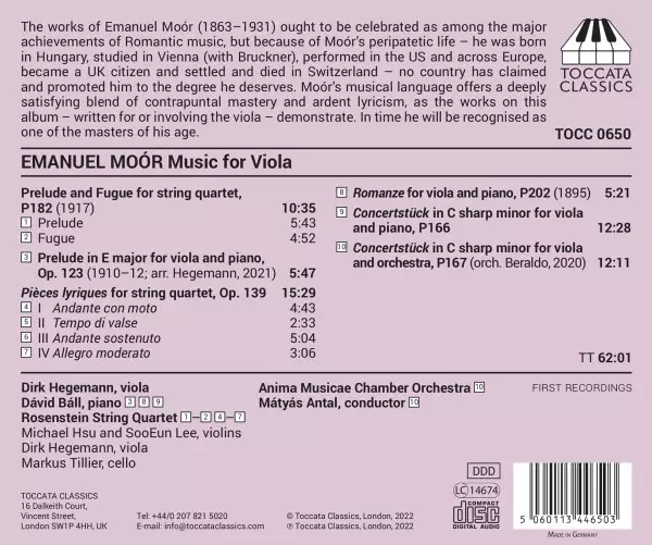| Artiste | Mátyás Antal | Anima Musicae Chamber Orchestra | Emanuel Moor | Dirk Hegemann | Dávid Báll | Rosenstein String Quartet |
