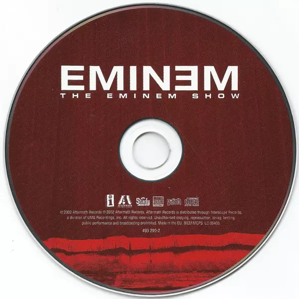 Eminem: The Eminem Show La version sur CD en Norme édition. Cette édition particulière a été publiée en L'Europe dans la maison d'édition Interscope Records En collaboration avec Aftermath Entertainment, Shady Records et Web Entertainment Le 27 mai 2002.