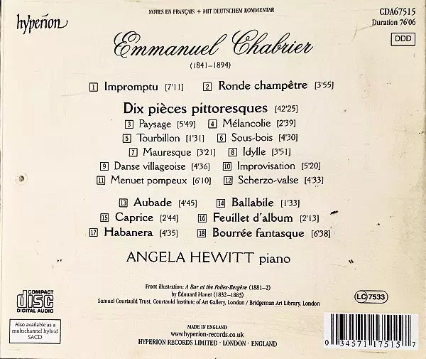 Artiste | Emmanuel Chabrier | Angela Hewitt |
