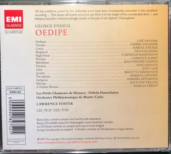 | Artiste | Nicolai Gedda | José van Dam | George Enescu | Brigitte Fassbaender | Barbara Hendricks | Marjana Lipovšek | Lawrence Foster | Gabriel Bacquier | Orchestre Philharmonique De Monte-Carlo | Gino Quilico | John Aler | Cornelius Hauptmann | Jean-Philippe Courtis | Orfeón Donostiarra | Jocelyne Taillon | Marcel Vanaud | Laurence Albert |