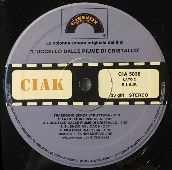 | Titre | L'Uccello Dalle Piume Di Cristallo (Colonna Sonora Originale Del Film) |