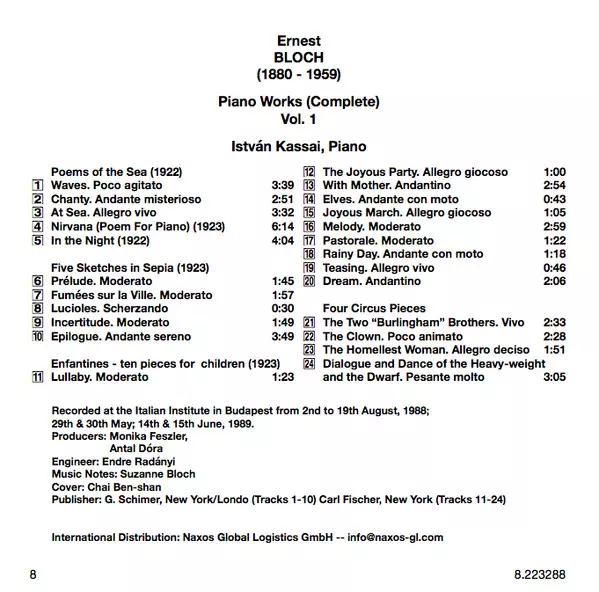 | Artiste | Ernest Bloch | Kassai István |