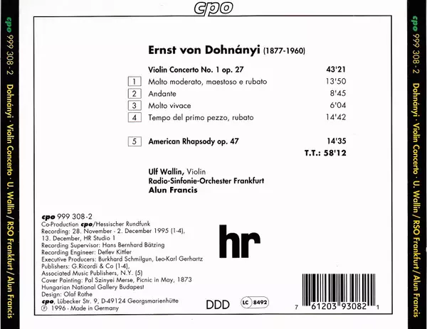 Artiste | Alun Francis | Radio-Sinfonie-Orchester Frankfurt | Ernst von Dohnányi | Ulf Wallin |