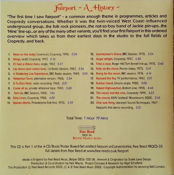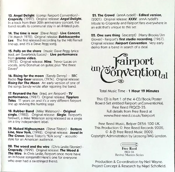 Fairport Convention: Fairport Unconventional La version sur 4CD/Coffret en Norme édition. Cette édition particulière a été publiée en ROYAUME-UNI dans la maison d'édition Free Reed Le 16 juillet 2002. Album couvre tous les genres Rock et Folk Rock.