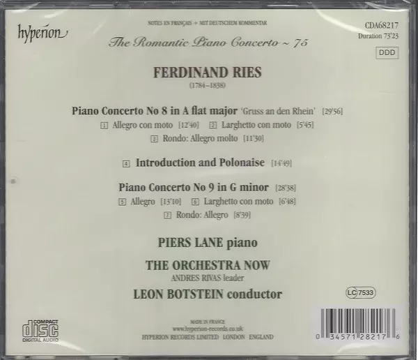 Artiste | Ferdinand Ries | Leon Botstein | Piers Lane | The Orchestra Now (TŌN) |
