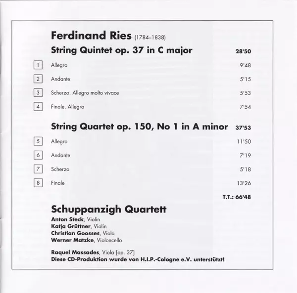 | Artiste | Ferdinand Ries | Schuppanzigh Quartett |