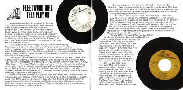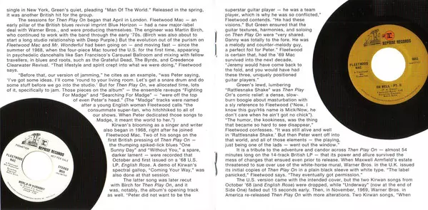 Fleetwood Mac: Then Play On La version sur CD en Remasterisé édition. Cette édition particulière a été publiée en L'Europe dans la maison d'édition Reprise Records En collaboration avec Warner Music Le 20 août 2013.