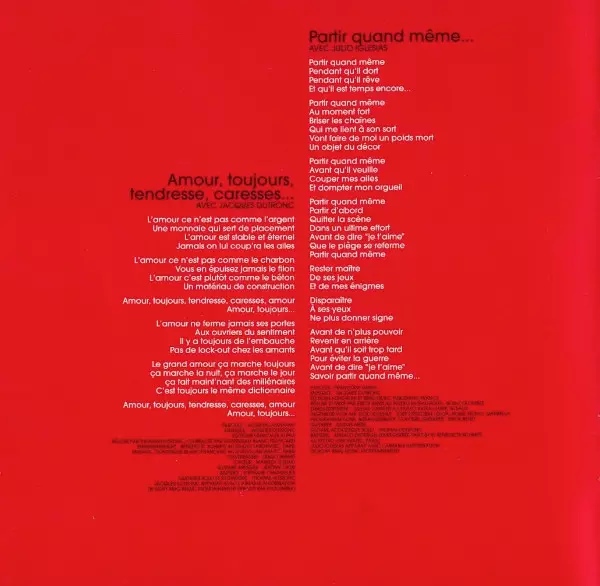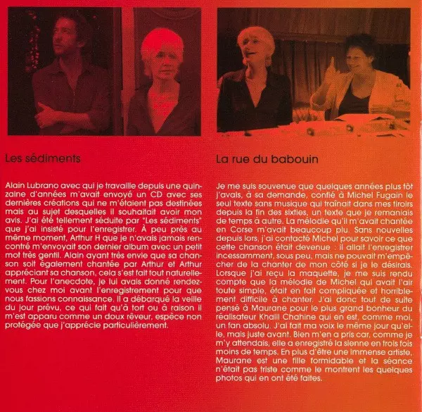 Arranged By, Guitar, Bandoneon Khalil Chahine | Cello Mathilde Sternat | Double Bass Christophe Wallemme | Drums André Ceccarelli | Featuring Maurane | Lyrics By Françoise Hardy | Music By Michel Fugain | Programmed By [Strings] Celmar Engel